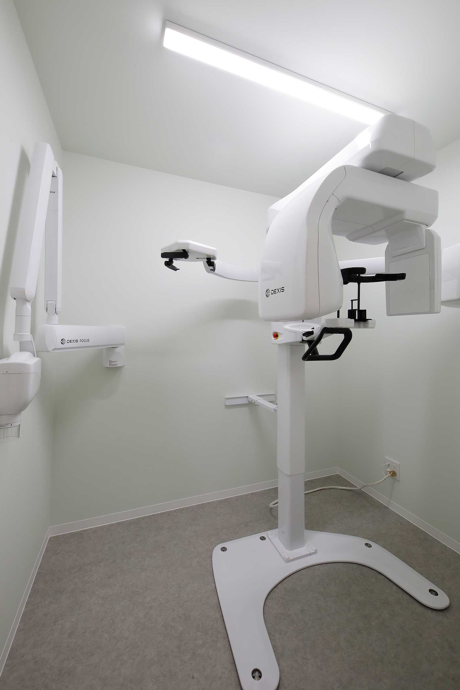 当院のレントゲン室には、CTを含む高度な画像診断機器を導入しています。立体的な画像によって、インプラント手術や顎関節症など、より精密で的確な診断が可能です。被ばく線量にも配慮した安全な設計で、患者さまに安心して検査を受けていただける環境を整えています。