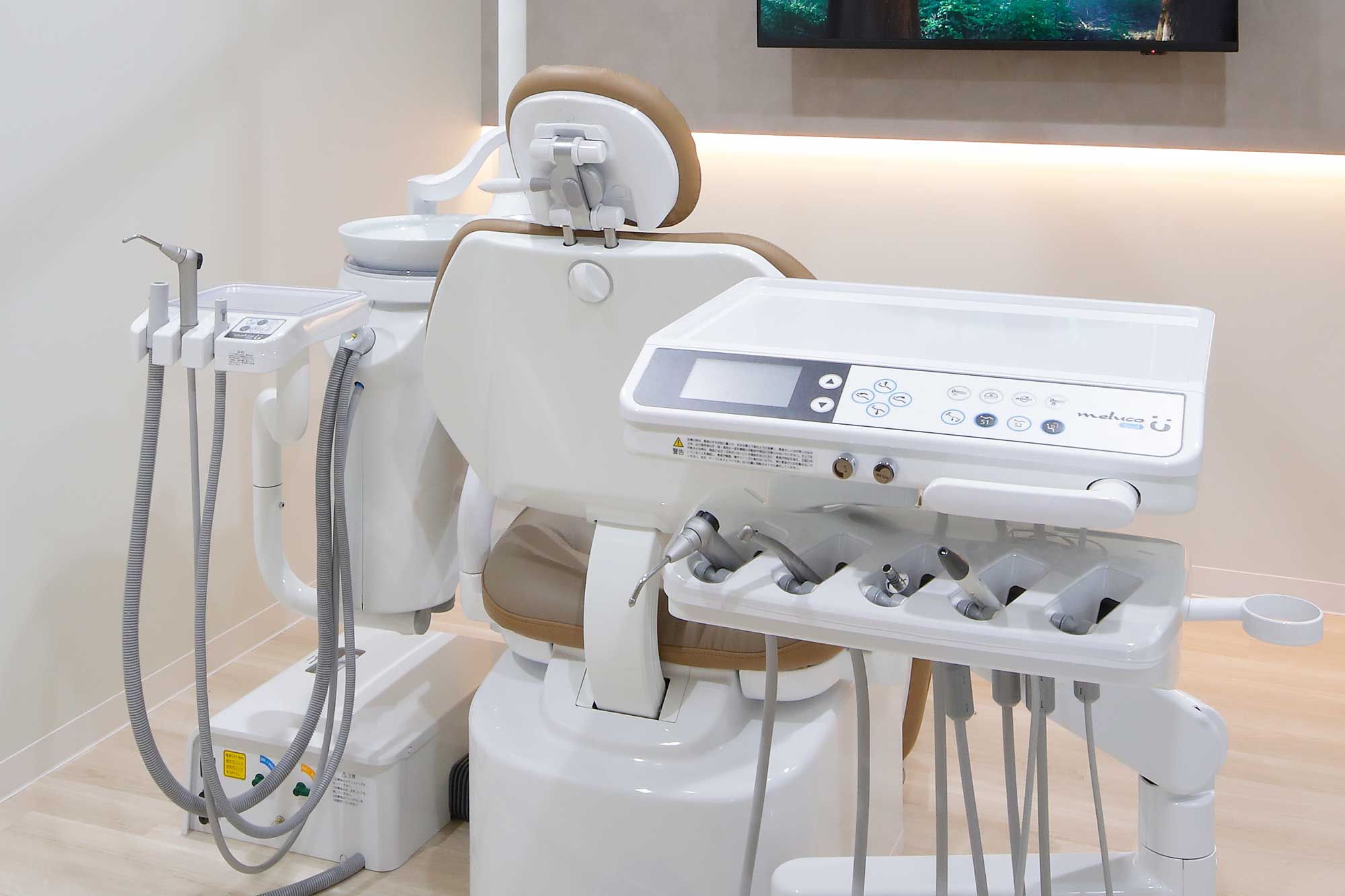当院では、患者さまが快適に診療を受けられるよう、座り心地に配慮した最新型の歯科用ユニット(診療台)を導入しています。長時間の診療でも負担が少なく、リラックスしてお過ごしいただける設計です。また、ユニット正面のモニターを活用し、治療内容をわかりやすくご説明。安心して治療を受けていただける環境づくりを心がけています。