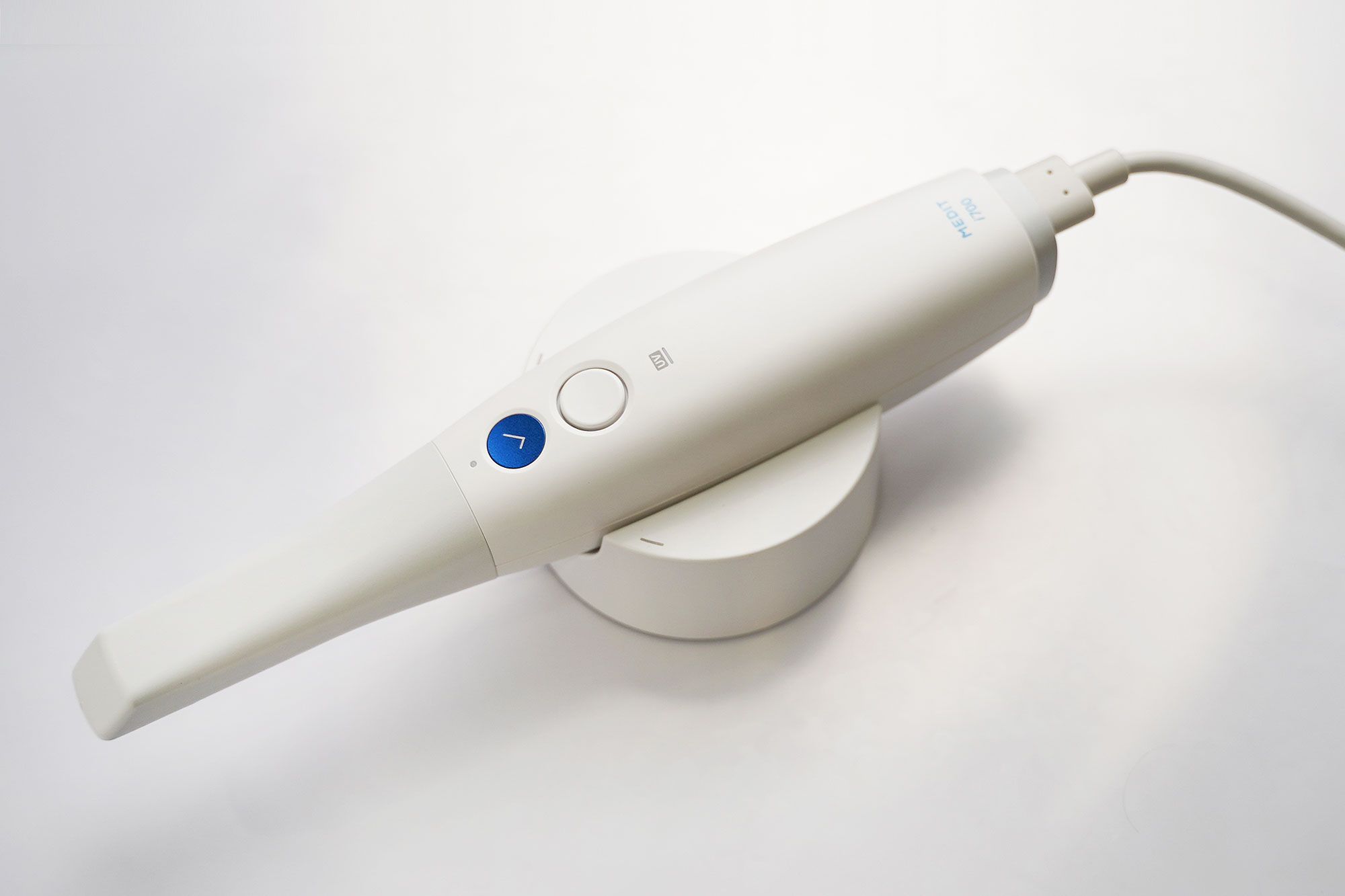 従来の型取りが苦手な方にも安心していただけるよう、当院では口腔内スキャナーを導入しています。小型カメラでお口の中をスキャンするだけで、精密なデジタルデータを取得できるため、嘔吐反射がある方にも負担が少なく快適です。精度の高い詰め物や被せ物の製作にもつながり、治療の質をより高めることができます。