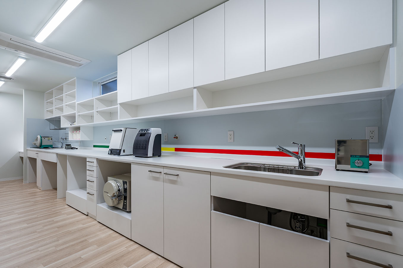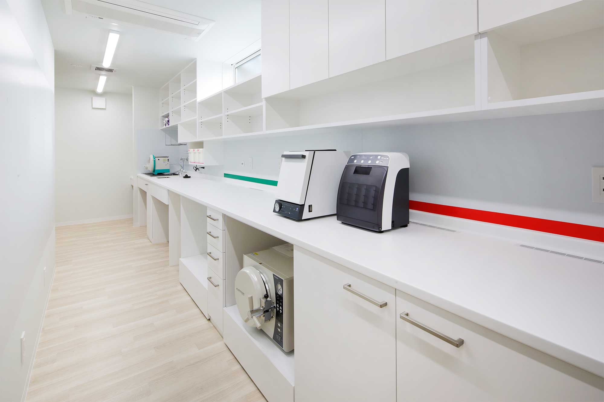 当院では、すべての患者さまに安心して治療を受けていただけるよう、滅菌管理を非常に重要視しています。専用の滅菌室を設け、治療に使用する器具は患者さまごとに高圧蒸気滅菌器などで徹底的に滅菌処理を行っています。見えない部分だからこそ手を抜かず、院内感染の予防に細心の注意を払っています。安全で清潔な医療環境の提供を、私たちは当たり前の責任として取り組んでいます。