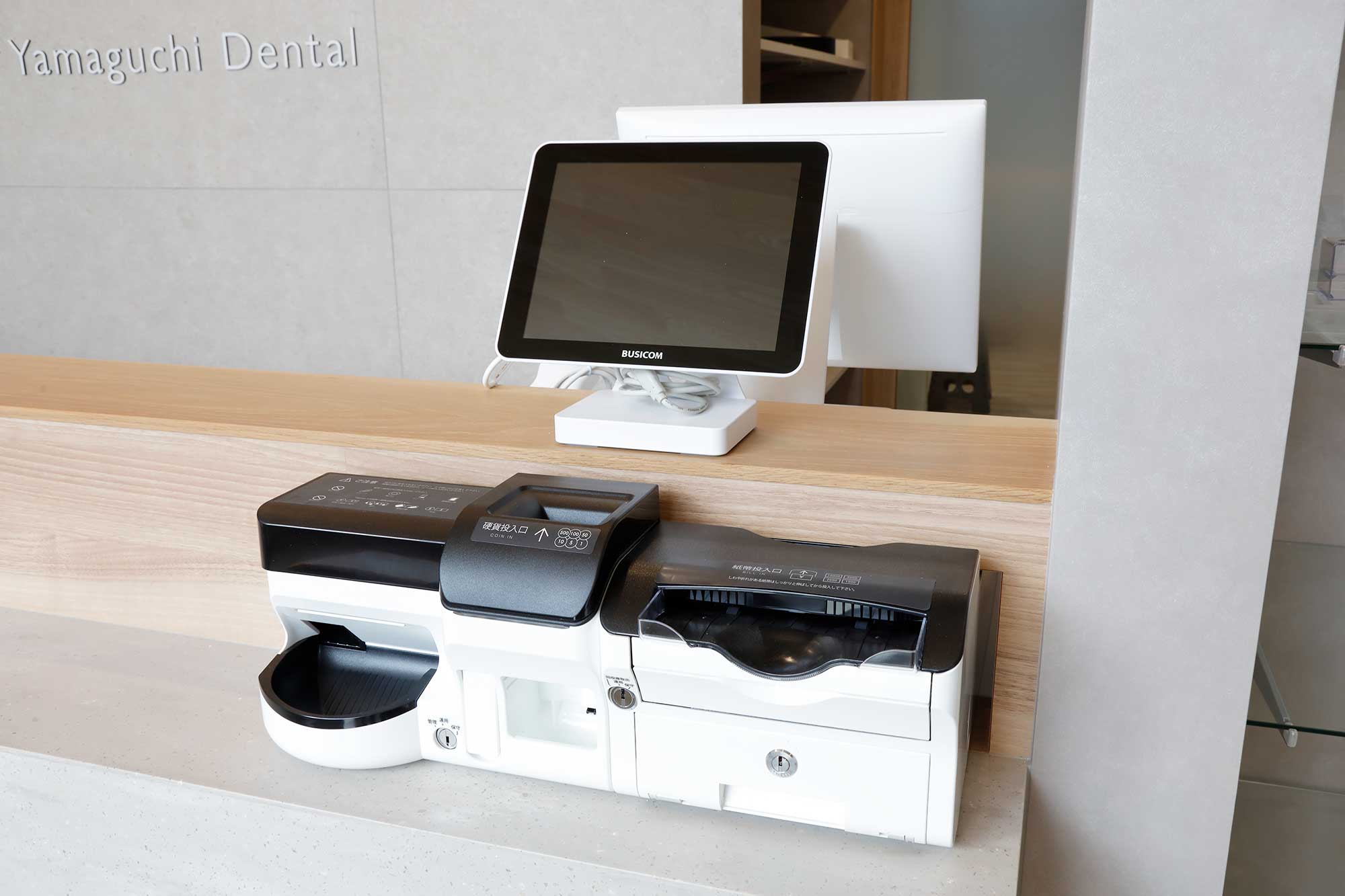 当院では、コロナ禍以降の衛生面への配慮と、スムーズなお会計のためにセルフレジを導入しています。現金だけでなく、クレジットカードをはじめとしたキャッシュレス決済にも対応しており、非接触で安心してお支払いいただけます。スタッフとの接触機会を減らすことで、感染予防につながるだけでなく、お会計時の待ち時間短縮にも役立ちます。